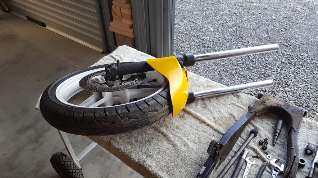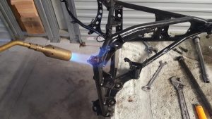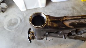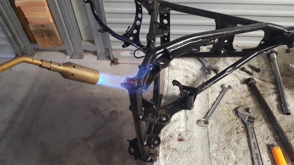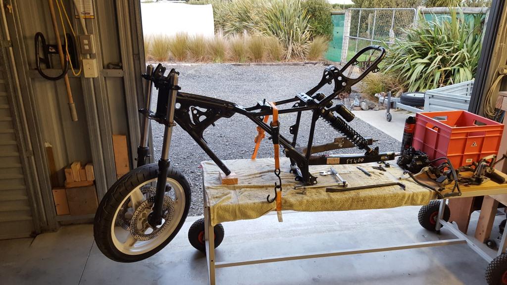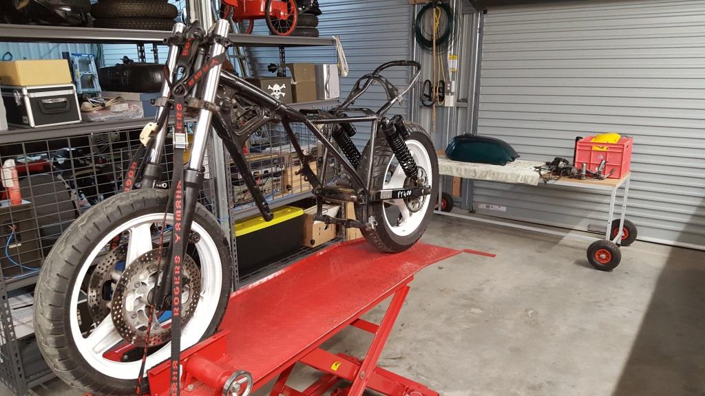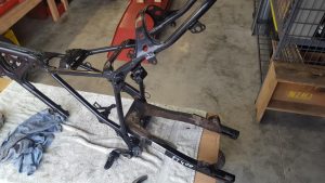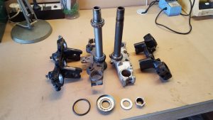 One of the footpeg bolts was broken off in the frame so that proved to be fun getting it out but after heating it with a torch and using a large pair of vice grips it eventually came out. The new fork trees and the frame had to be fitted to make sure that everything was going to work, so when the frame came back from the engineer it was going to be pretty straight forward to get the forks installed and get a rolling frame set up.