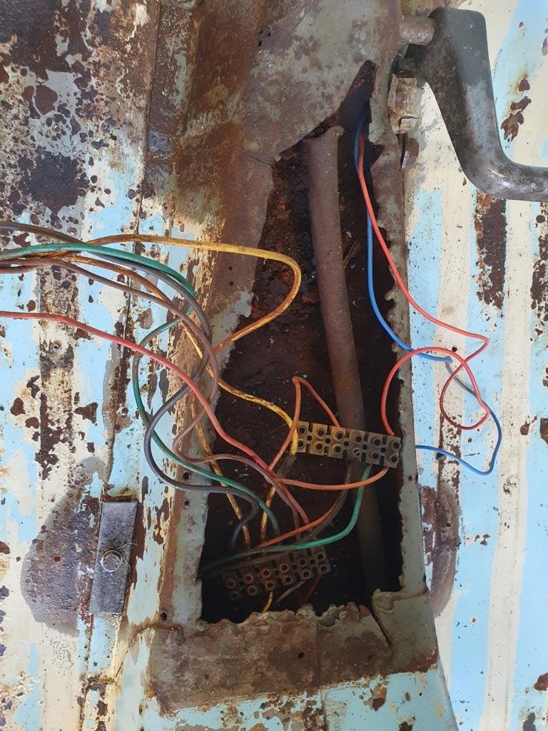 The frame was originally a cream colour which had been repainted light blue at some stage. There were some dents, surface rust and missing paint patches all over it and it was in a sad state of repair. Most of the work was in sorting out the rust in the frame and the floor. Someone had also cut a hole in the floor cavity the cables run through (sadly quite common, if the outer cables need replaced in Vespas).