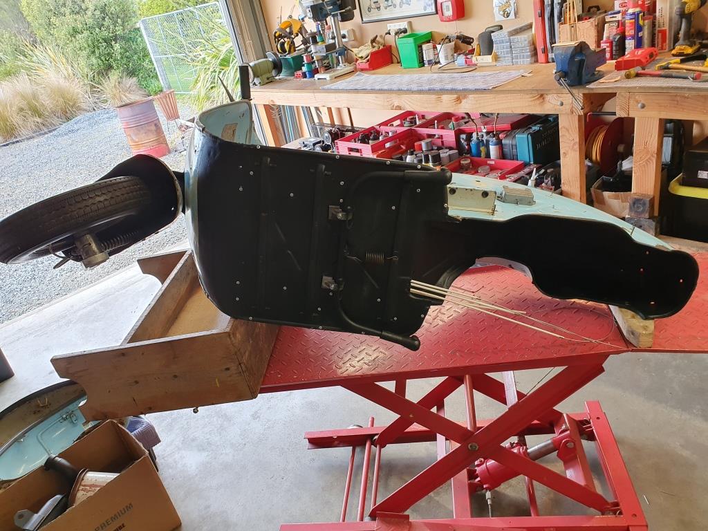 If it was going to be restored, you would just get the frame media blasted and then panel beat it as required. Then you would get it painted in an original colour and call it done. It’s quite an expensive process to go through for a scooter that probably isn’t worth the time and effort – as she who must be obeyed has mentioned a few times now…