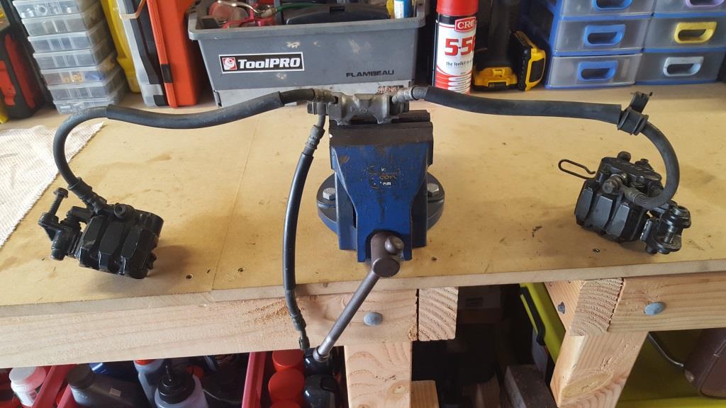 The CBR600 donor bike had been sitting for a long time and the front disc brakes were seized solid, so I will have to get some caliper kits and new brake pads all round. The brake lines have all been replaced with new braided ones because the original ones didn’t fit anymore and I had to figure out how the rear brake would now work. The original XL rear brake was just a cable from the rear hub’s brake arm that connected to the foot brake pedal and was activated by the pedal pivoting on a shaft and pulling the cable.