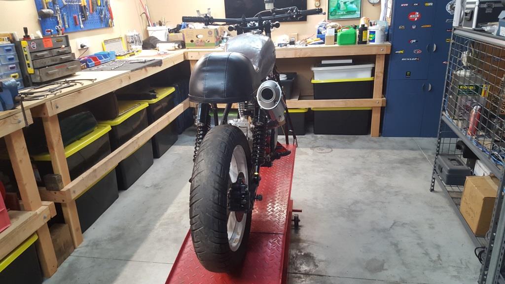 The bike is pretty much assembled and looks OK for a first attempt. Its not quite the pure Cafe style I was after but more of a fusion cafe/motard thingy.