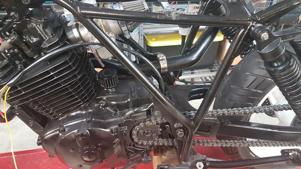 If I have done my sums right, with the new 17″ rear wheel and the front/rear sprocket combination, the new gearing should be a little higher than the standard XL500 gearing. I will have to wait and see how it goes although the stock engine should pull around 130-145 kph if the gearing is right. The older XL/XR engines weren’t really designed to rev so getting this right should hopefully help prolong the life of the engine.