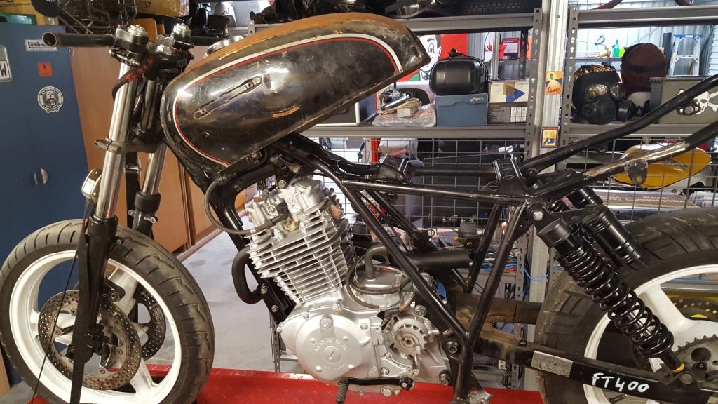 So progress has been a bit slow but things are coming along and after another trade me purchase, the frame may now have a new petrol tank. The original XL tank that came with the bike had no fuel cap, was dented quite badly, was missing the tap and I didn’t really like the “look” of it. Trying to envision what another tank would actually look like, without photoshop or a similar image editor, has been quite hard but then you also have to consider the practical things like: