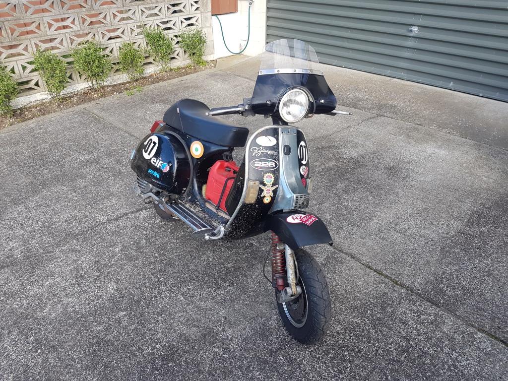 It took a while to get everything sorted, mainly with the engine swap from a LML cased, reed valve, fuel pumped Quattrini engine with a Mikuni carburetor and a Lincoln Shaw programmable ignition to a standard kitted PX200 Pinasco engine, wiring and cabling.