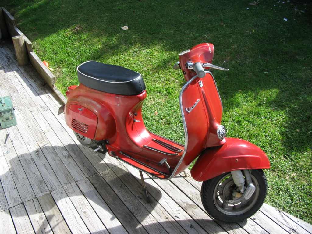 My older brother was working on a farm just out of Christchurch in the early 1980s and the farmer asked him to fetch a gas axe. In a barn sat this dusty red scooter and the farmer intended to cut a wheel off to fashion a wheelbarrow. My brother thought it a shame to wreck the scooter and offered to go buy a wheelbarrow as a straight swap and the farmer agreed. Bullseye the Vespa SS90